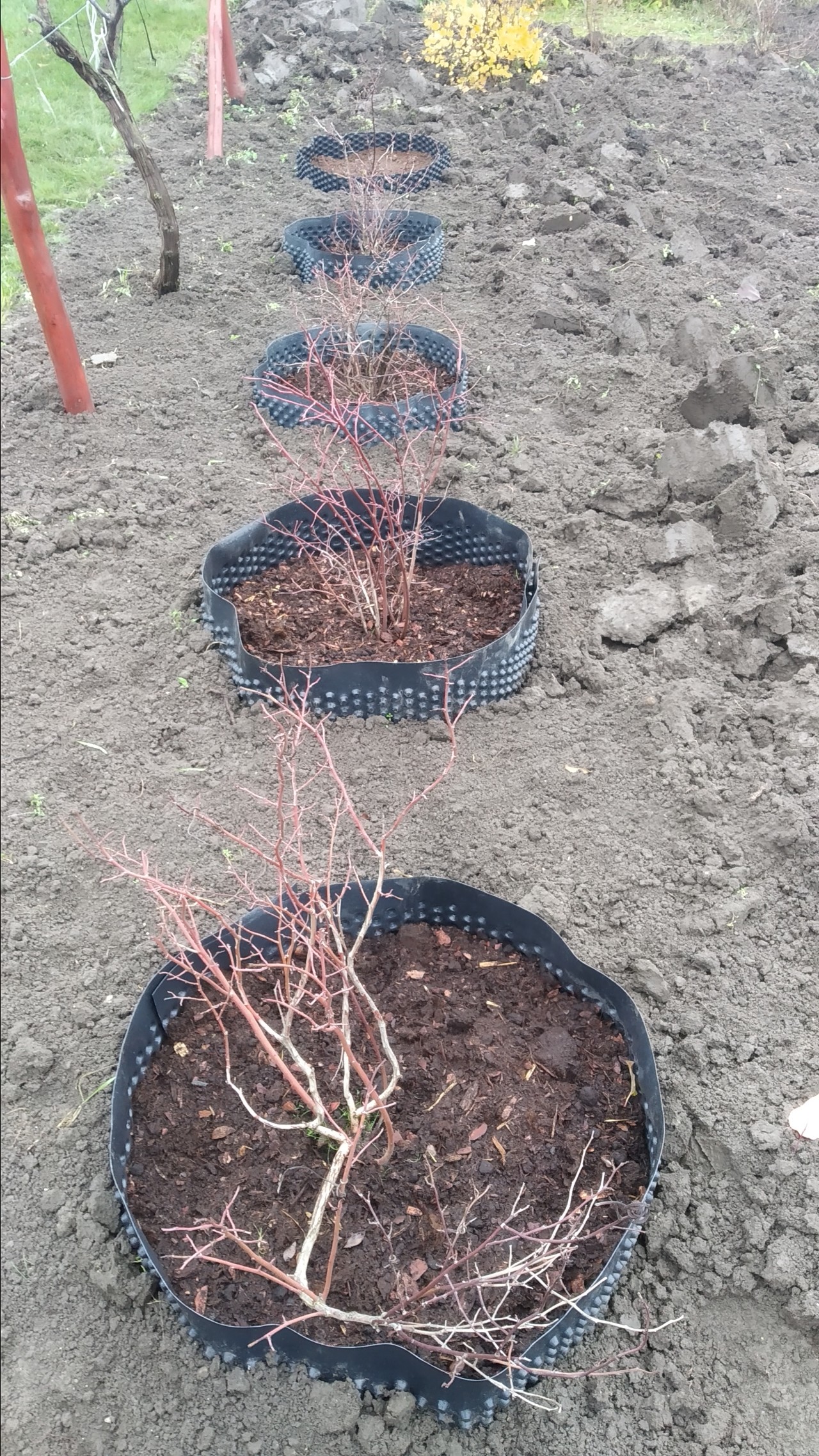- kyslá pôda musí byť zbokov oddelená fóliou od ostatnej pôdy v záhrade(pozor, odspodu nie!)